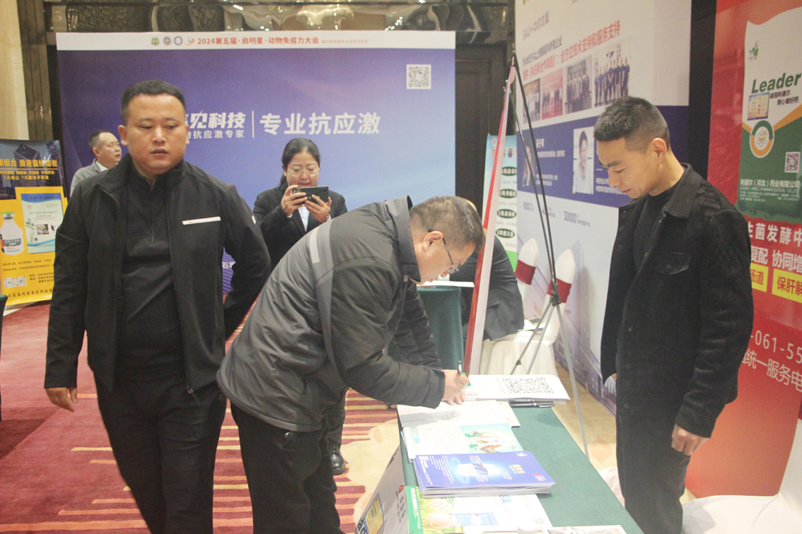 行業(yè)領(lǐng)導(dǎo)、嘉賓到利德爾藥業(yè)展位上紛紛駐足,以及終端養(yǎng)殖業(yè)者進(jìn)行咨詢洽談。在展位上,利德爾藥業(yè)展示了其最新的動(dòng)物免疫保護(hù)產(chǎn)品,這些產(chǎn)品均經(jīng)過嚴(yán)格的科學(xué)研究和實(shí)驗(yàn)驗(yàn)證,旨在為動(dòng)物提供更全面、更高效的免疫保護(hù)。