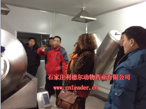 客戶在參觀藥物混合車間,孟總分別把不同的兩個混合機,給大家做了詳細說明。
